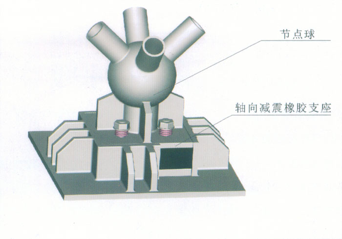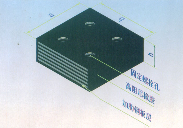 ZX型軸向減震橡膠支座結(jié)構(gòu)圖右圖,是為了滿足豎向荷載不高于4000KN的節(jié)點(diǎn)而設(shè)計(jì)的。該支座由多層橡膠片和加勁鋼板經(jīng)加溫、加壓硫化而成,具有相當(dāng)?shù)呢Q向剛度,從而能夠支撐上部構(gòu)件賦予的荷載。受力情況下,通過(guò)支座局部變形帶來(lái)的耗能起到減震作用。支座通過(guò)固定螺栓孔,借由螺栓實(shí)現(xiàn)和上下構(gòu)件的固定。本支座有一定的豎向轉(zhuǎn)角功能。