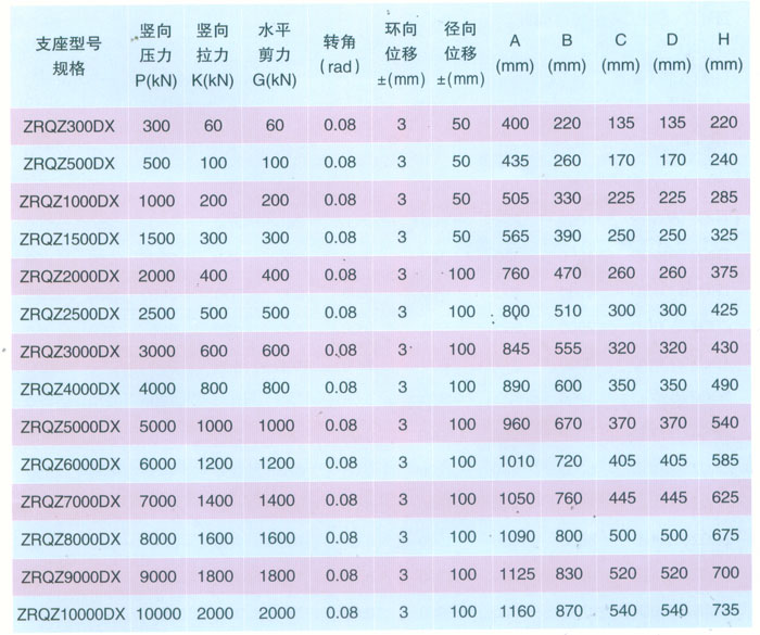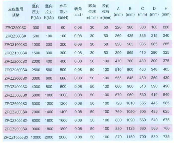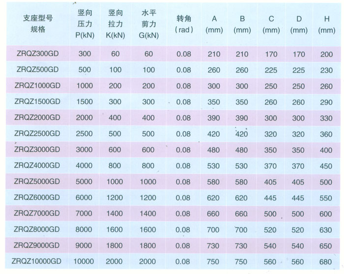 球鉸支座參數(shù)表