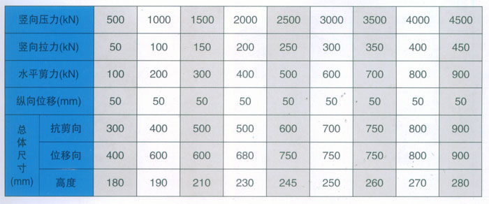 常用LY系列拉壓橡膠支座主要參數(shù)一覽表 表3