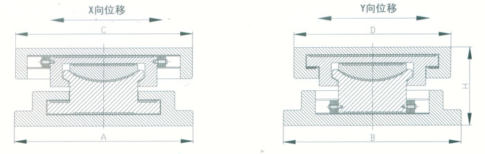 支座中的相對滑移部件之間,采用目前世界上摩擦系數(shù)最低的聚四氟乙烯滑板和不銹鋼板相隔,充分減小了摩擦阻力,使各部分之間的運動流暢,避免爬行現(xiàn)象的產(chǎn)生。本類支座通過球面聚四氟乙烯滑板上部構件沿著球面相對于下部構件的轉(zhuǎn)動實現(xiàn)轉(zhuǎn)角(常用值為0.02rad),在工作過程中支座沿著滑移箱滑道滑動實現(xiàn)水平位移。